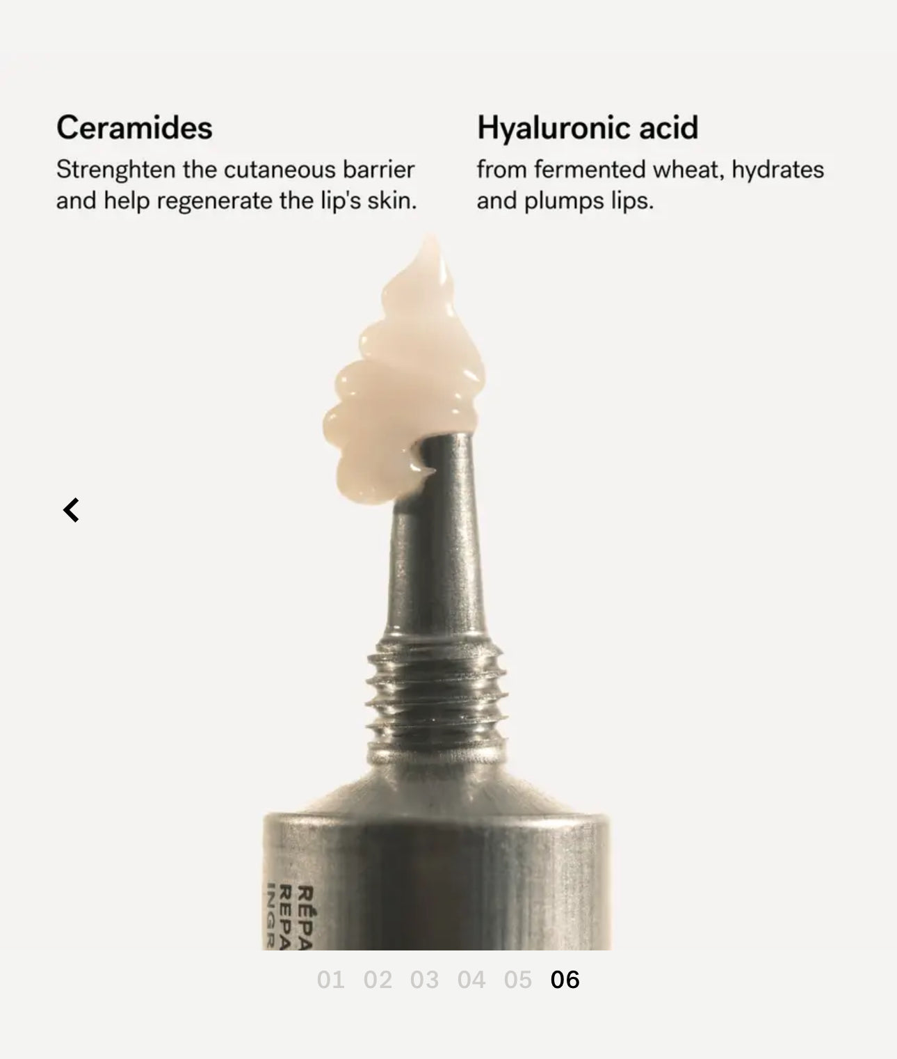 Combines the replenishing benefits of ceramides with hydrating hyaluronic acid to repair chapped lips.